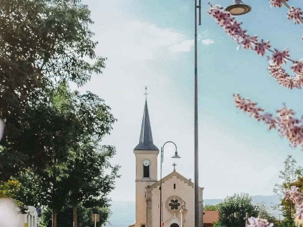 The church is in the Neo-Gothic style. It was built by Fontaine, the architect from Annecy, in 1890 and opened in 1892. The interior was renovated in 1967 and the exterior in 1980.