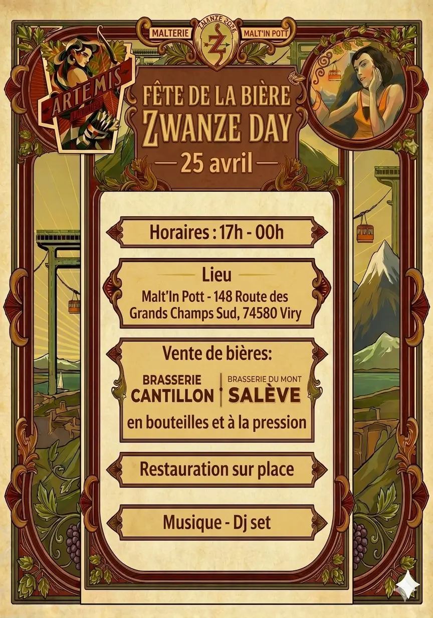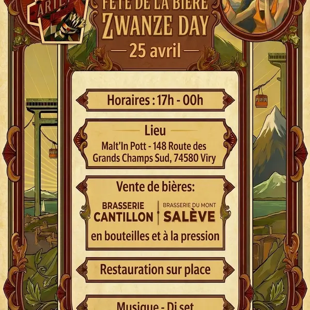 La Brasserie de Mont Salève organise une fête autour de la bière à l’occasion de la sortie exceptionnelle – tous les deux ans – de cuvées rares de la brasserie belge renommée Cantillon. Les fûts sont mis en perce à 21h précises, dans des lieux sélectionnés par Cantillon, uniquement pour cet événement biennal.