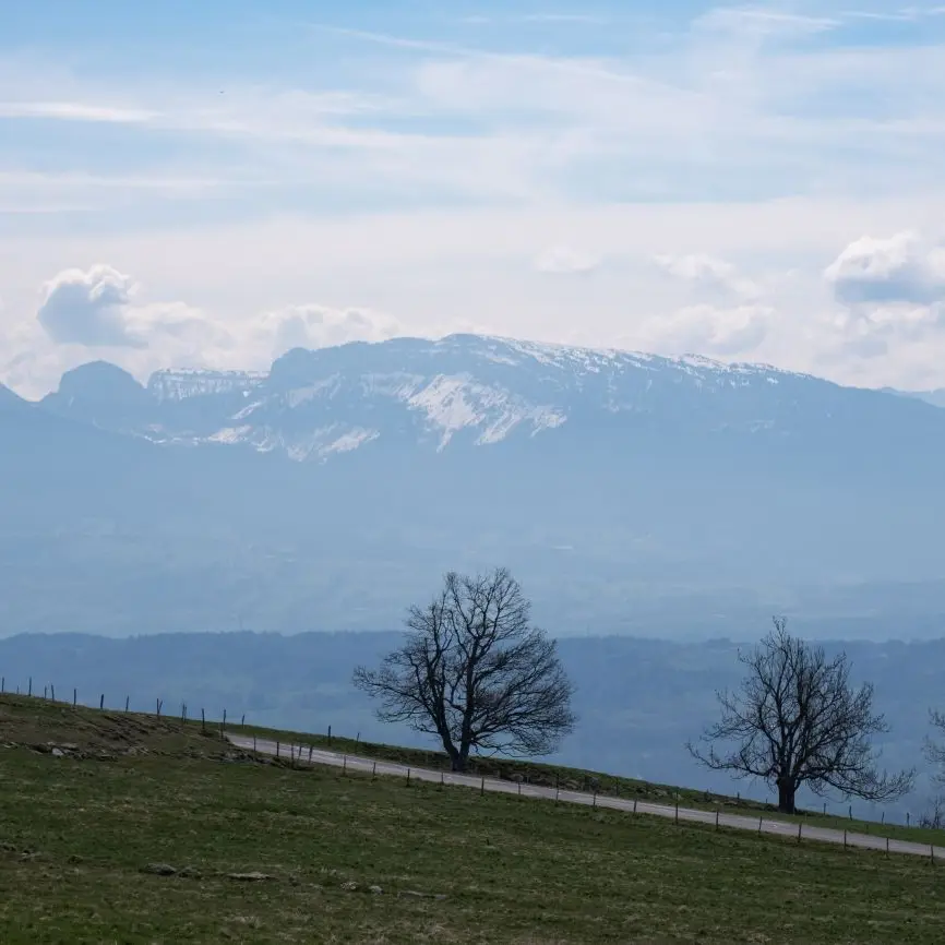 This walk through the old fields of the Carthusian monks with exceptional views of the surroundings of Geneva and Lake Geneva as well as the Bornes plateau, the Aravis mountains, Lake Annecy and Mont Blanc.