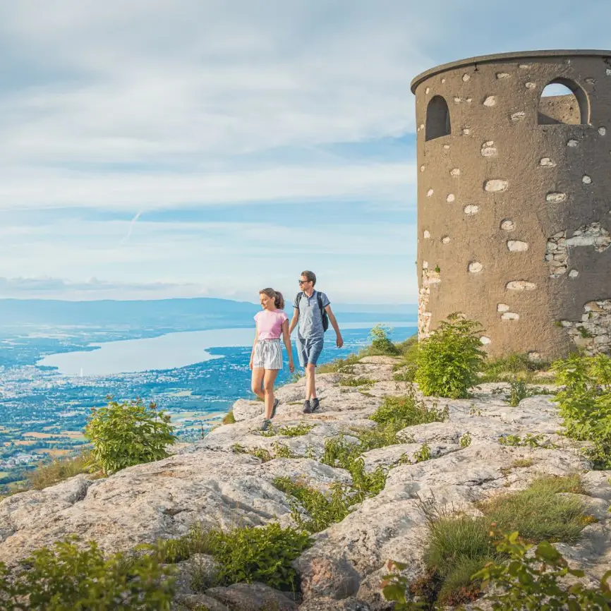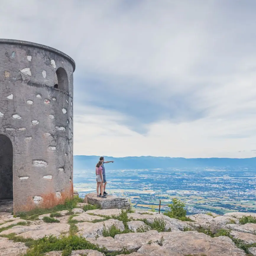 Le Grand Piton is the highest point of Le Salève offering a view mainly focused on the Genevois region and Jura.<br/>The tower was built between 1820 and 1830 by Claude-François Bastian, a wealthy notary and mayor of Frangy. Prior to the construction of this tower, this small plateau on the edge of the cliff, which features some of the Salève's finest lapiaz, was home to a 14th-century lookout post.
