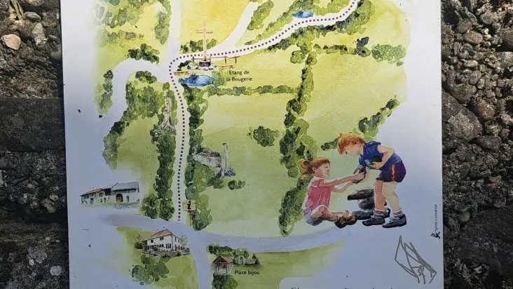 At the edge of this shady path, you can create and leave a work of land art, in stone, wood or earth, more or less ephemeral. You'll discover wooden sculptures along the way. An ideal setting for a family outing.