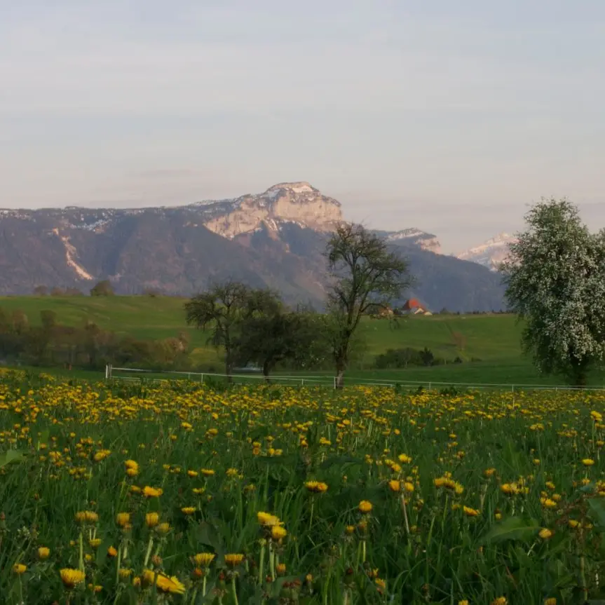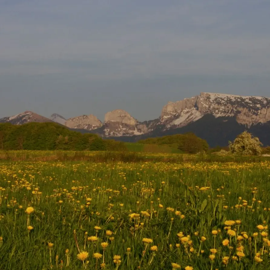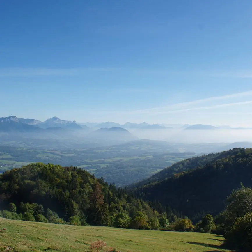 Facing the superb Aravis mountain range, on the foothills of the Salève, discover a magnificent panorama all the way to the Mont-Blanc chain, on the ancient Roman road linking Geneva to Annecy.<br/>It is a piedmont of the Northern Alps, below the Bauges mountains, deeply carved by the tributaries of the Arve, Fier and Usses streams.