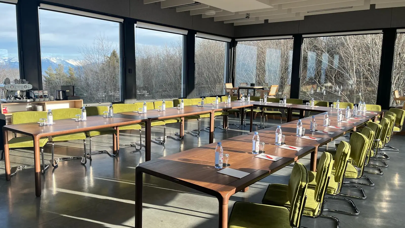 Un lieu magique, à deux pas de Genève, qui surplombe la région avec une vue à couper le souffle sur le Mont-Blanc et le lac Léman. Pour des journées séminaires/team-building, des événements festifs ou des soirées d’entreprises, ce cadre naturel unique se transforme en un écrin d’exception pour vos plus beaux projets.