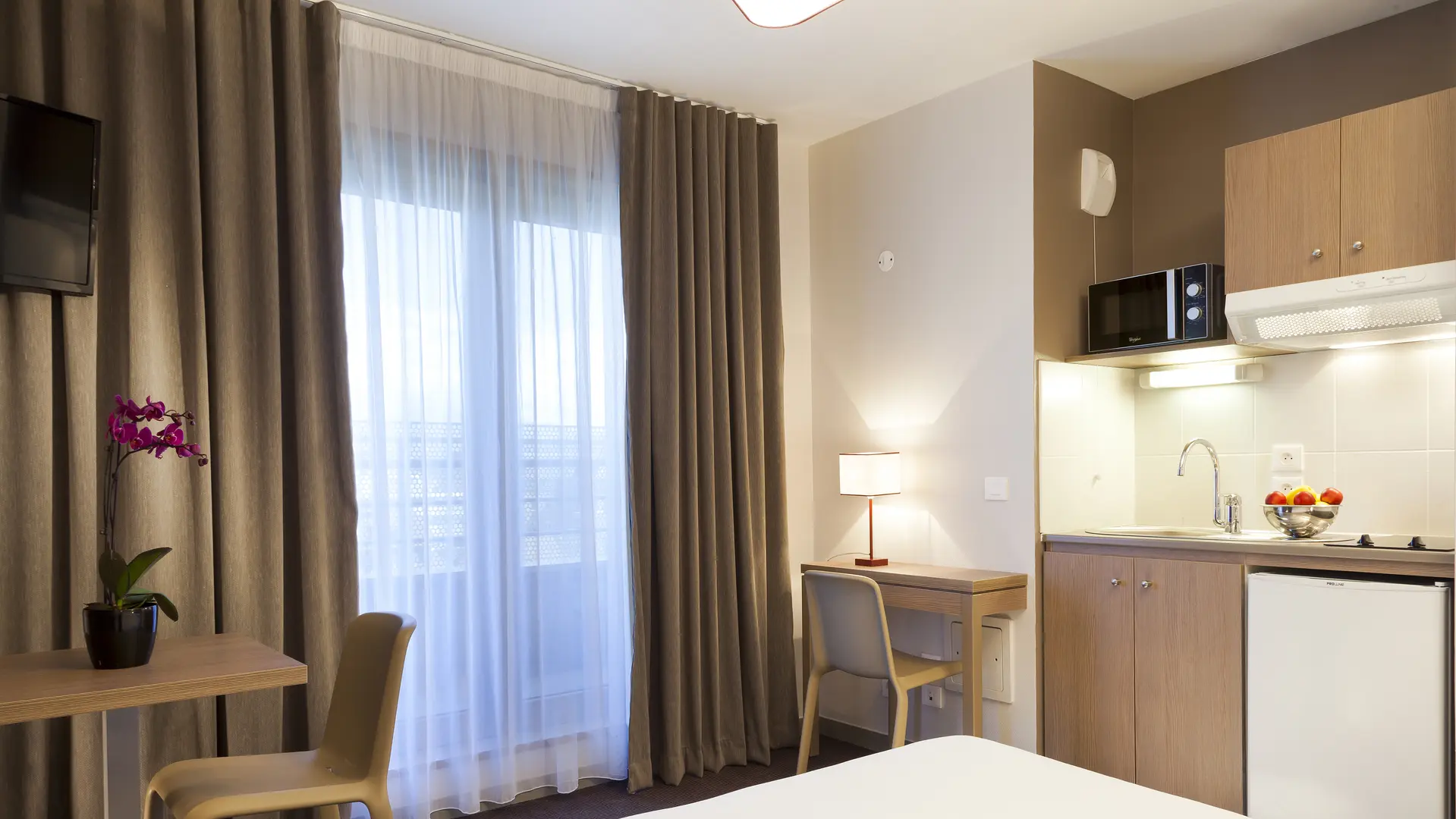 Accessible à pieds depuis la gare d Annemasse située à 200 metres, 90 logements allant du studio 2 personnes à l appartement 2 pièces. Possibilité de petit dejeuner formule buffet en supplément.