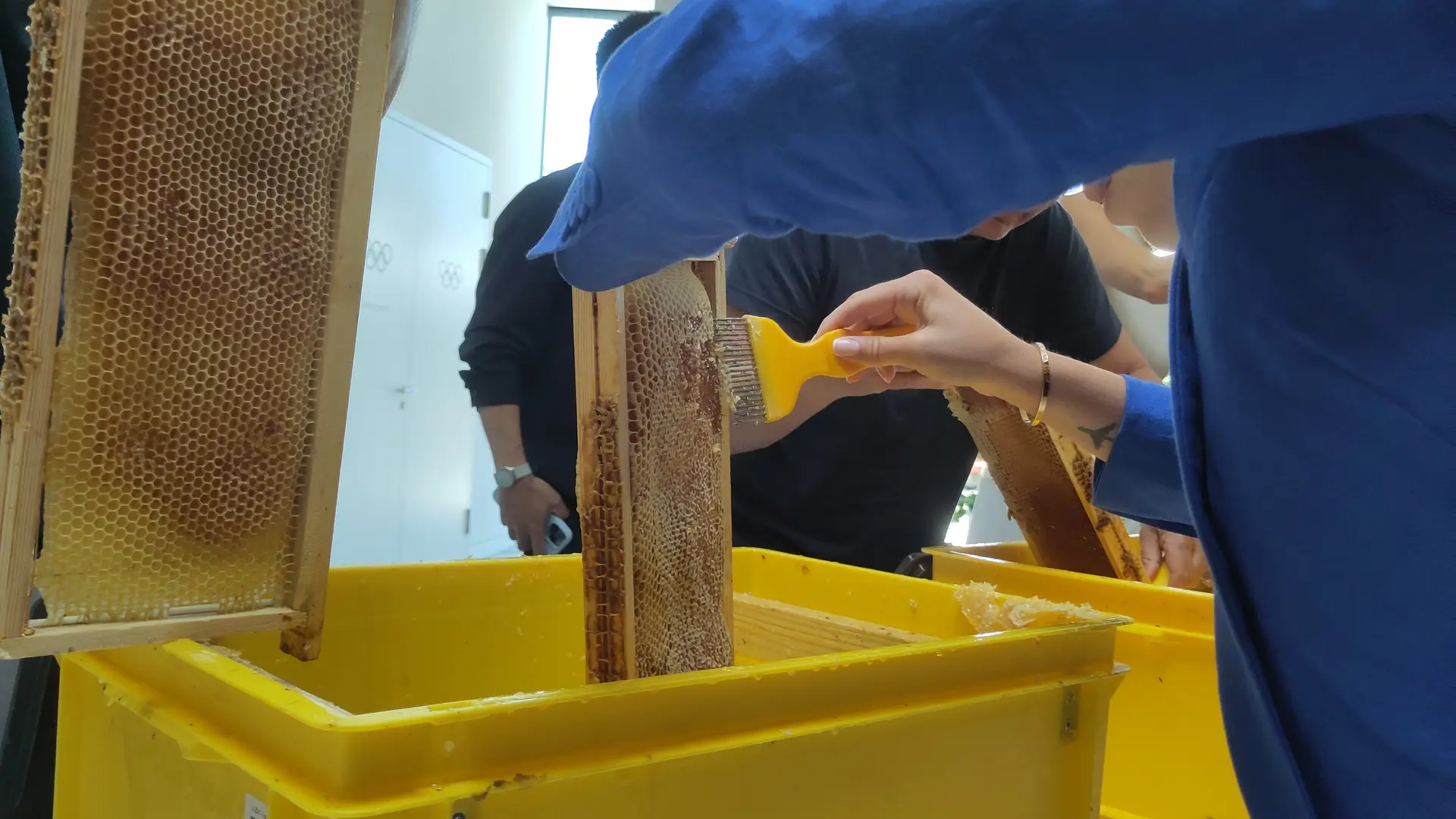 Ce moment incroyable n’aura plus de secrets pour vos collaborateurs. Après l’explication de la fabrication de cet or liquide, les salariés pourront passer à l’extraction de celui-ci directement des cadres de miel. Puis ils feront la filtration et la mise en pot de ce magnifique trésor de la nature. Bien sûr, dégustation en avant-première par les participants. Chacun de ceux-ci repartirons avec un pot de miel à son nom. Atelier réalisable de mai à octobre.