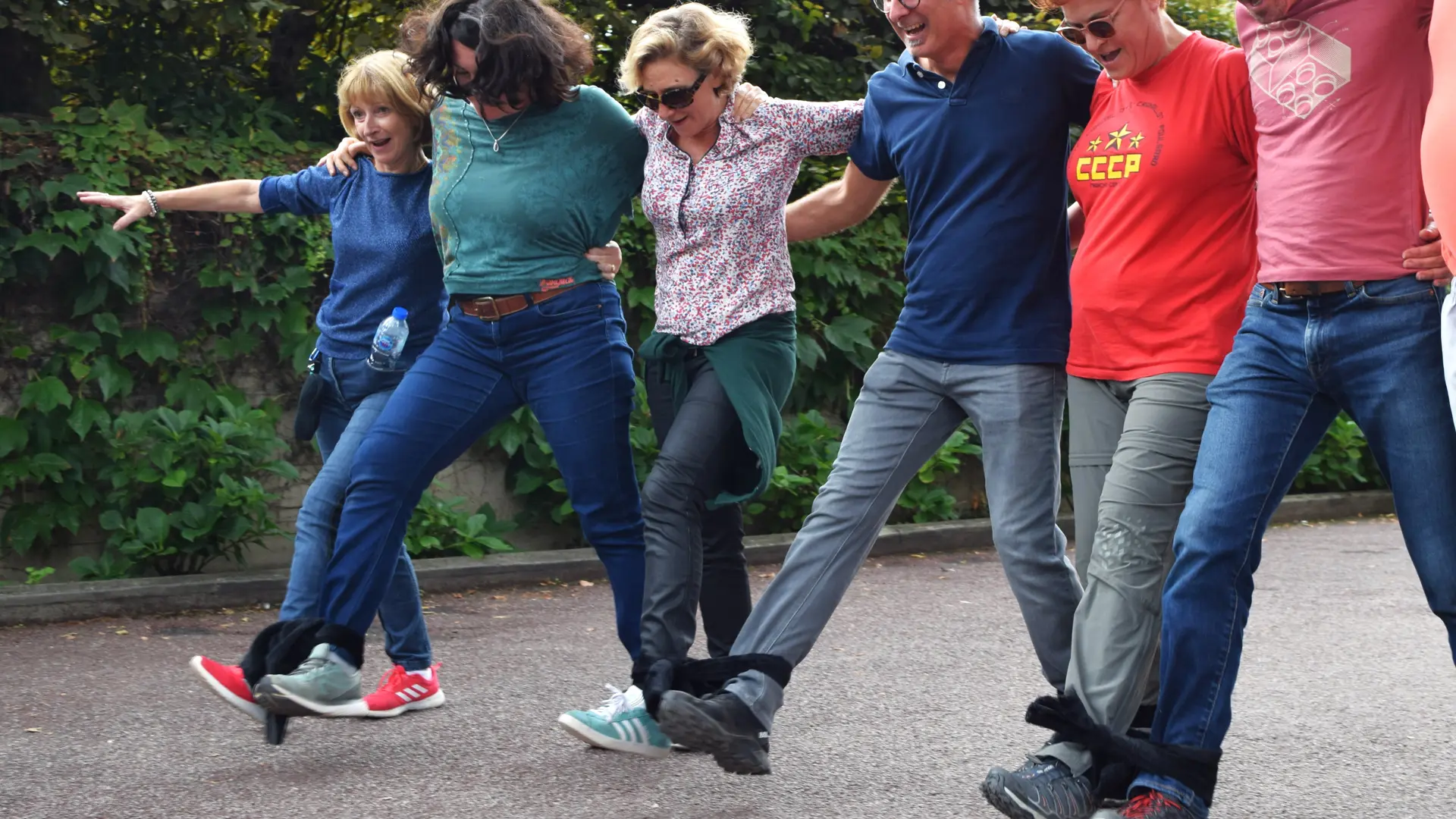 • Équipe attachée : franchissez un parcours avec les chevilles liées