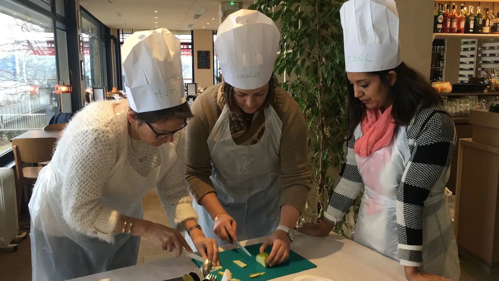 Dans un premier temps, vous réalisez en équipe une recette imposée, sous la supervision de notre cheffe. Vous serez guidé et conseillé dans la réalisation de verrines et de bouchées, que vous pourrez ensuite déguster à l’issue de votre atelier.