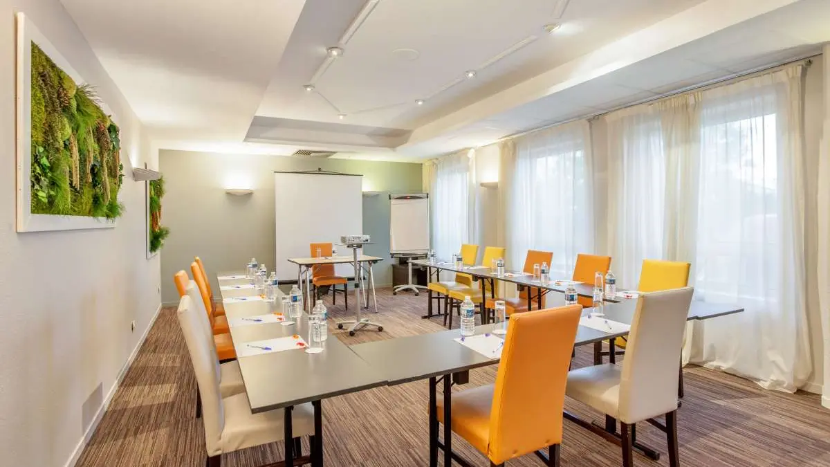 Per i vostri eventi aziendali a Ginevra e in Svizzera, prenotate una sala all'Appart'Hôtel Genève Gaillard e beneficiate di un servizio su misura. Che si tratti di affittare una sala riunioni o di organizzare una giornata di studio, lasciateci gestire il vostro seminario dalla A alla Z. A soli 20 minuti da Ginevra, i vostri ospiti, da 18 a 55, siederanno nei saloni Léman (40 m²) e Mont-Blanc (60 m²).