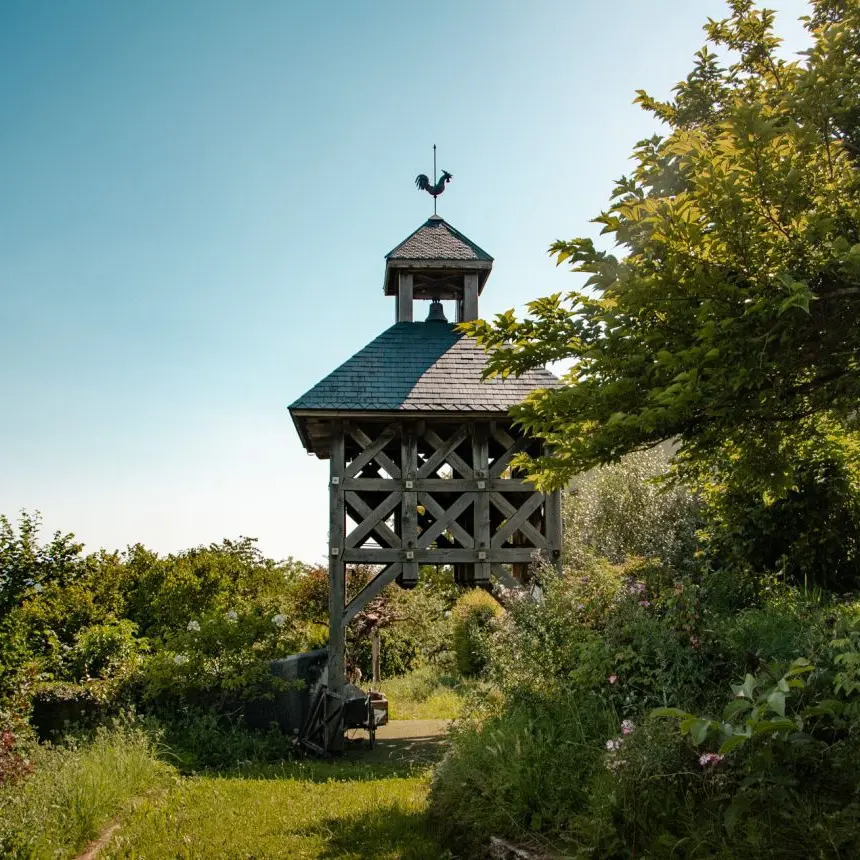 Incantevole chiesa con pannelli in legno intagliato. La chiesa parrocchiale offre mostre e un giardino ornamentale al suono del carillon.
