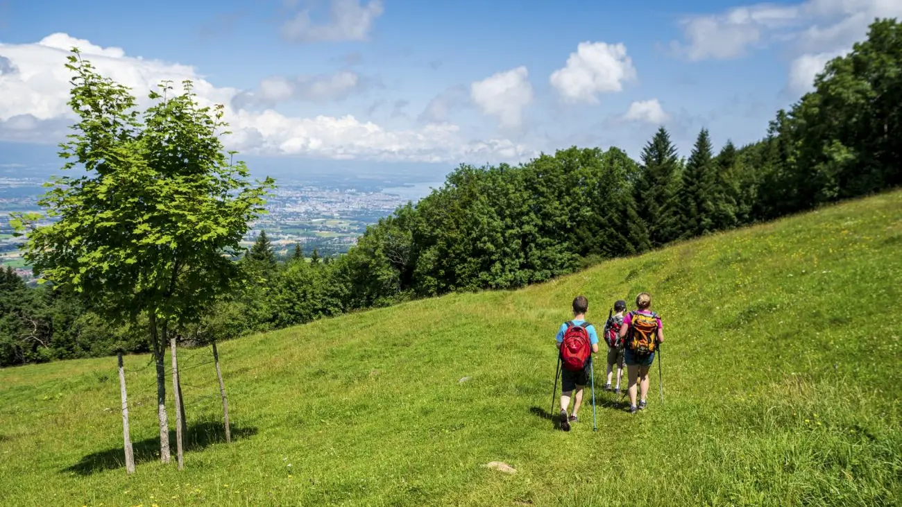 De l'esplanade du téléphérique, vue dégagée sur Genève et son jet d'eau avec en toile de fond le jura. Un refuge de tranquillité avec un spectacle à couper le souffle.<br/>Si vous aimez le sport alors ceci est l'endroit pour vous, avec un choix de randonnées à pied, le parapente, le vélo de montagne.