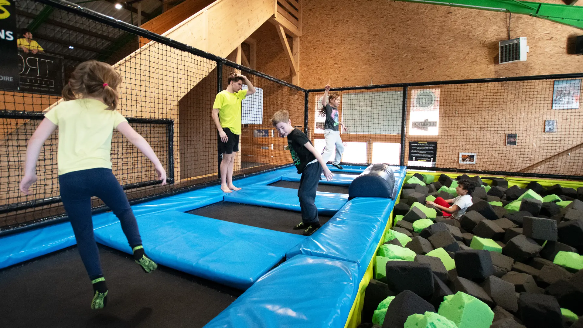 Plein de trampolines, 3 bacs à mousse :