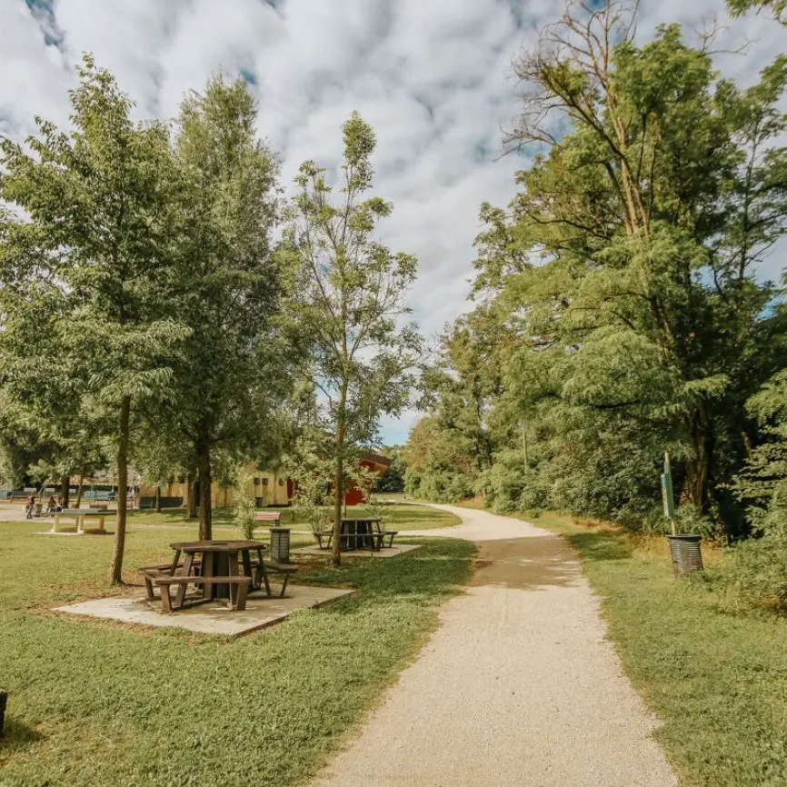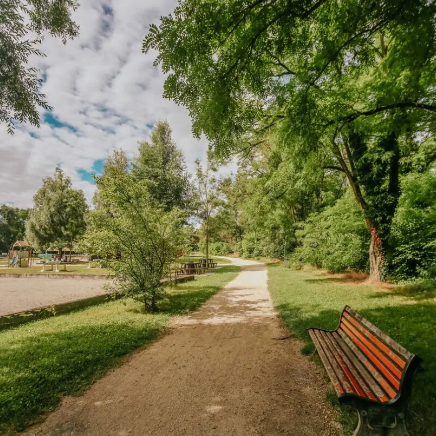La rivière de l'Aire prend sa source au pied du Salève puis se jette dans l'Arve dans le canton de Genève en Suisse. Le sentier est agrémenté d'aires de pique-nique et de jeux pour les enfants, ce qui le rend idéal pour une petite sortie en famille.
