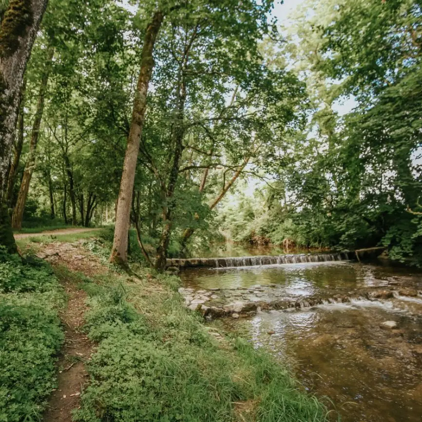 Promenade rafraîchissante très agréable le long d'une rivière côté France puis côté Suisse jusqu'à Lully
