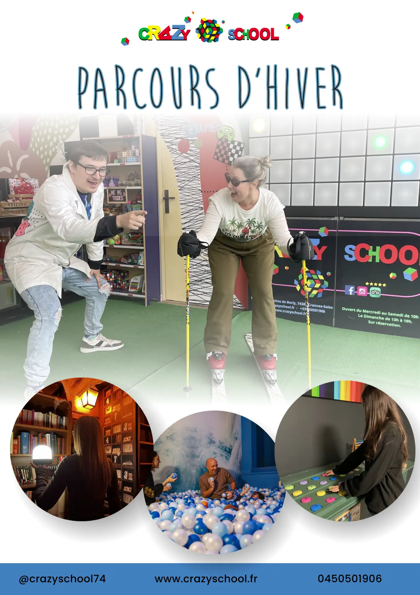 Venez découvrir l'univers de la Crazy School pendant l'hiver ! Un espace de 600m2 de sensations et action pour jouer ensemble.