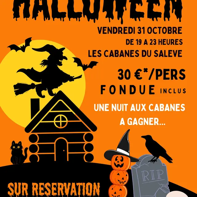 Venez fêter Halloween aux Cabanes du Salève lors d'une soirée musicale et costumée et dégustez une fondue d'Halloween !