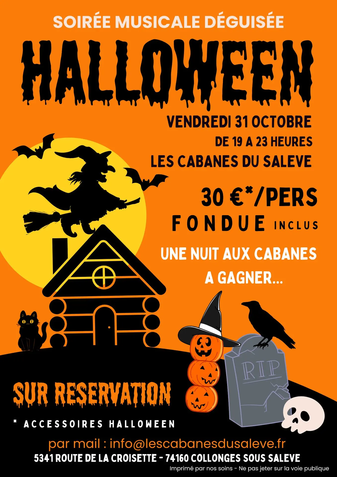 Venez fêter Halloween aux Cabanes du Salève lors d'une soirée musicale et costumée et dégustez une fondue d'Halloween !